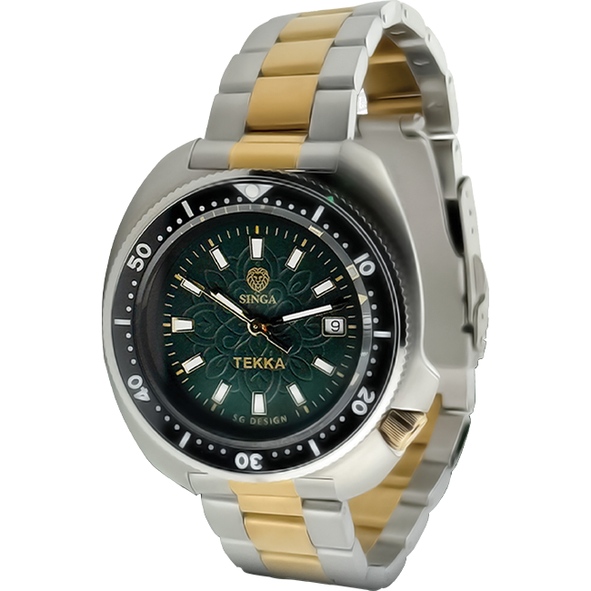 Tekka Market is a celebration of senses – spices and saris, Tamil beats and the clang of morning trade. Generations meet here over brass weights and breakfast. This watch captures that riot of heritage and ritual in one frame. A Rangoli‑inspired dial with gold accents sits in a two‑tone case that feels both festive and everyday. With a bracelet for the street and a leather strap for quiet moments, the Tekka Edition is built for duality, just like the district it honours.